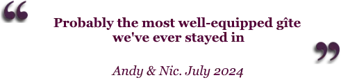 The spacious ground floor is open plan with a lounge area with seats around the large fireplace, a dining table and a roomy kitchen. The kitchen is fully equipped with a washing machine, dishwasher, gas oven and four ring hob, microwave, toaster and coffee machine. All necessary cooking utensils are provided along with an iron and ironing-board. There is a large fridge-freezer in the kitchen, extra capacity for storing cold drinks and wine is available in the cellar. A door from the kitchen gives access to a balcony, with a table and chairs for alfresco dining, and steps down to the garden. You can enjoy your breakfast on the balcony and watch the deer in the field enjoying theirs, or savour a late evening glass of wine whilst watching the sunset.